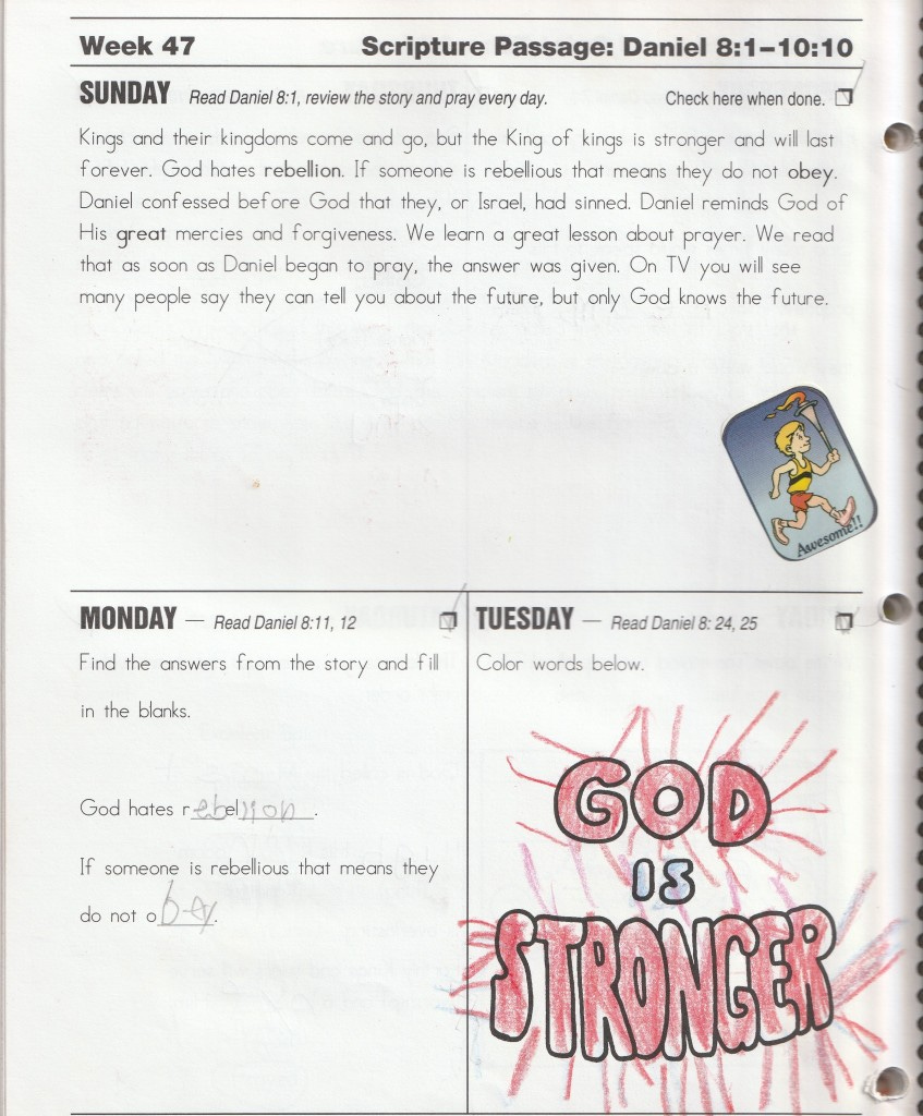 Challenging authority is something that is seen as sinful or wicked. It is seen as an act of rebellion against god and your "god given" authority figures. And god hates rebellion (just take it from this "Word of Life" book aimed at 1st and 2nd graders).