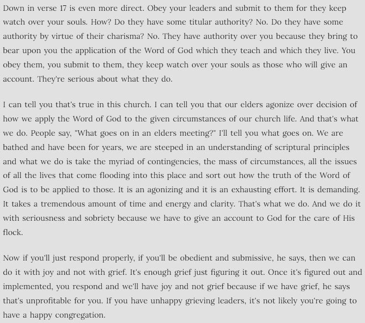 I need to interject here that this is the same man (John Macarthur) that has helped abusers and used his power to enable abuse of the women and children in his church