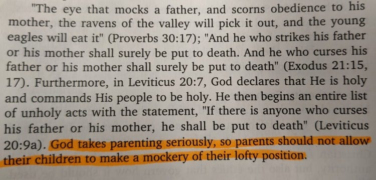I know I've covered this quote in the past. But I think it illustrates just how far authority is supposed to go in a child's life. Parents MUST make these choices for a child because their children can't be trust with this power.